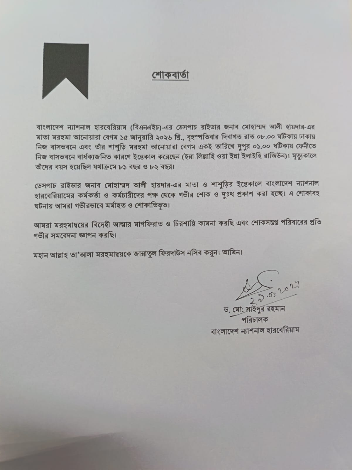 শোকবার্তা