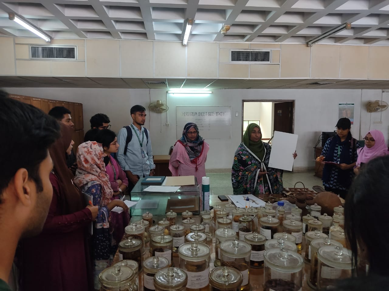 ২ মার্চ, ২০২৬ খ্রি. রোজ বৃহস্পতিবার গাজীপুর কৃষি বিশ্ববিদ্যাল-এর ফরেস্ট্রি এন্ড এনভাইরনমেন্ট বিভাগের সম্মানিত দুই (০২) জন শিক্ষকসহ মোট ৩৯ জন শিক্ষার্থী বাংলাদেশ ন্যাশনাল হারবেরিয়াম পরিদর্শন করেন এবং হারবেরিয়াম নমুনা প্রস্তুতকরণ, প্রক্রিয়াকরণ ও সংরক্ষণ সম্পর্কিত জ্ঞান লাভ করেন।