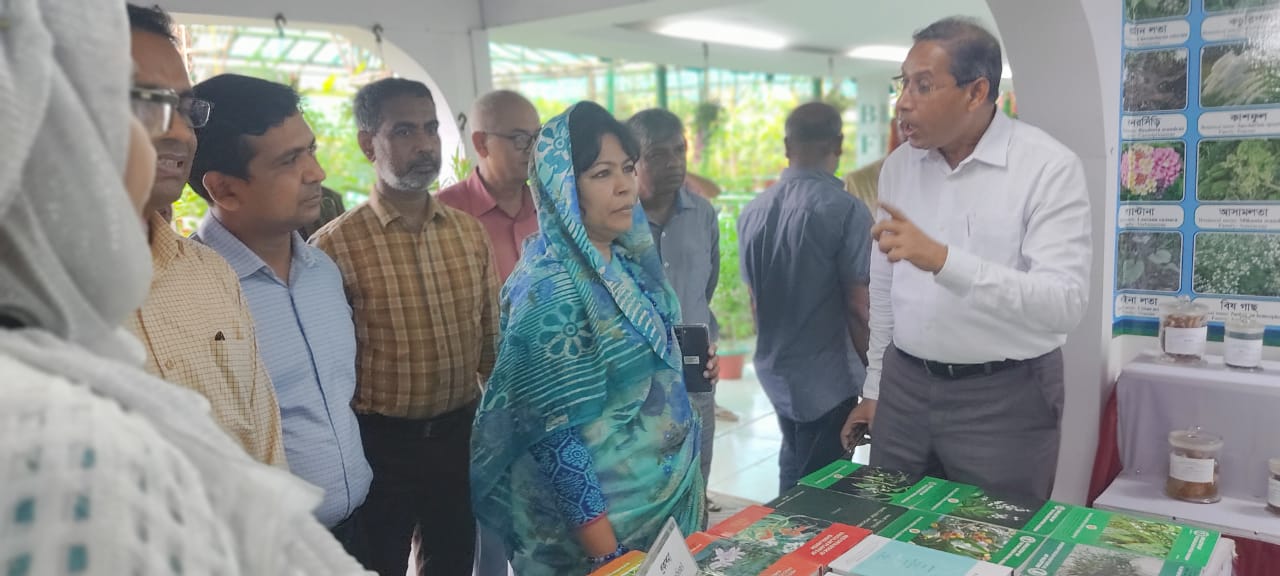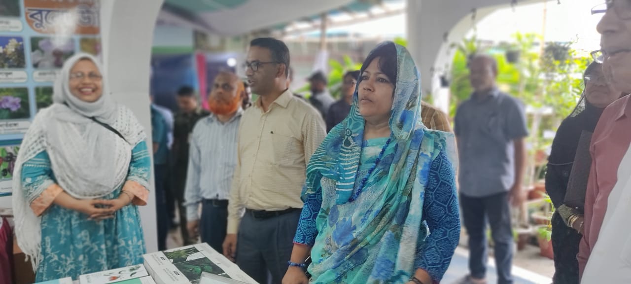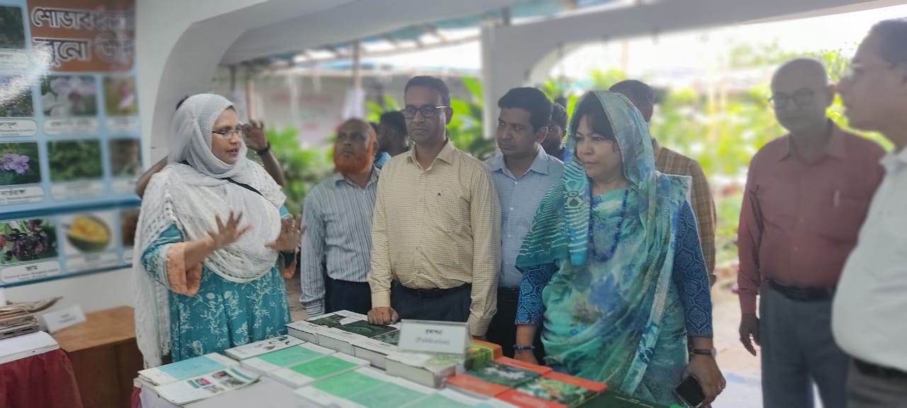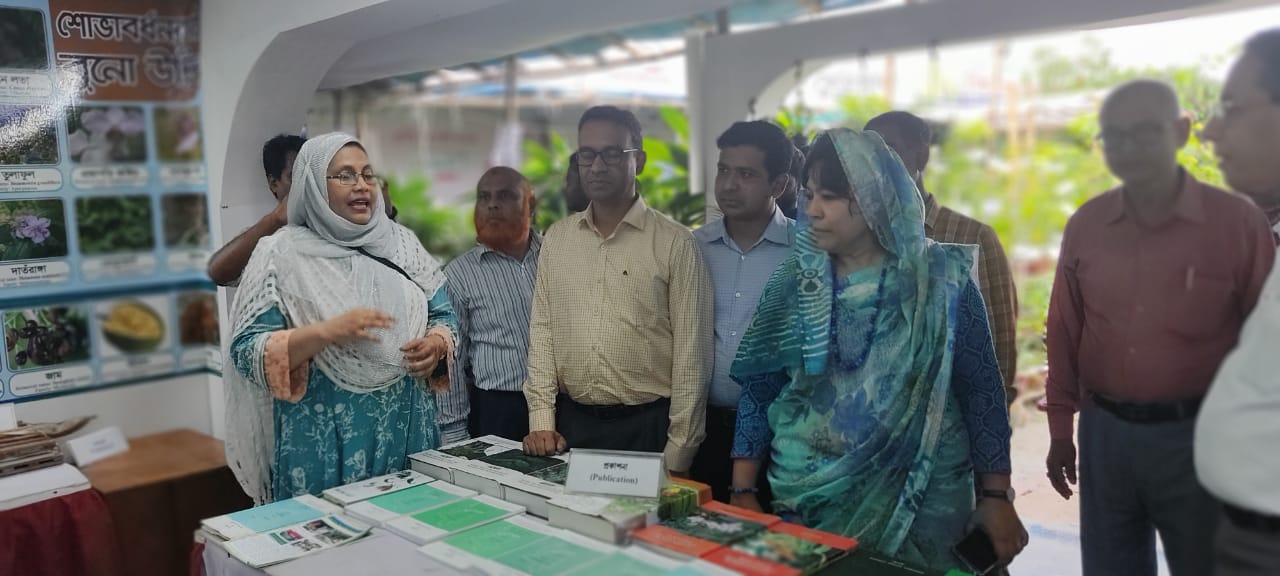 অদ্য ০৩/০৭/২০২৩ তারিখে পরিবেশ, বন ও জলবায়ু পরিবর্তন মন্ত্রণালয়ের সম্মানিত সচিব ড. ফারহিনা আহমেদ আয়োজিত জাতীয় বৃক্ষমেলায় বাংলাদেশ ন্যাশনাল হারবেরিয়ামের প্রদর্শনী স্টল পরিদর্শন করছেন।